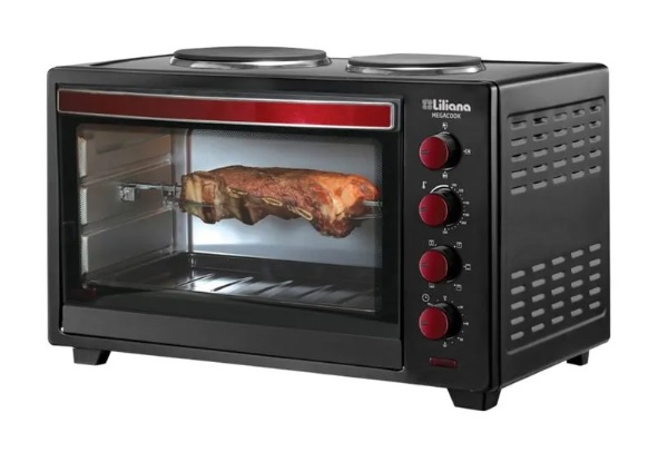 Horno Eléctrico MegaCook de Liliana, la solución todo en uno para cocinar de manera práctica, eficiente y con resultados profesionales en tu hogar! Con su convección forzada, 2 anafes integrados y spiedo rotativo, este horno eléctrico te permite asar, hornear, gratinar y cocinar con facilidad. Además, su diseño funcional incluye bandeja antiadherente, rejilla metálica y accesorios removibles para una limpieza sencilla. ¡Disfrutá de una cocción precisa y deliciosa con la calidad de Liliana!