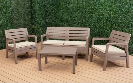 El complemento ideal para tu espacio. Ofrece un confort único. Contiene almohadones de tela impermeable y tanto los sillones como la mesa cuentan con tacos antideslizantes.