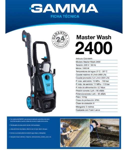 HIDROLAVADORA GAMMA G2518 MASTER WASH 2400 150 BAR 1900W